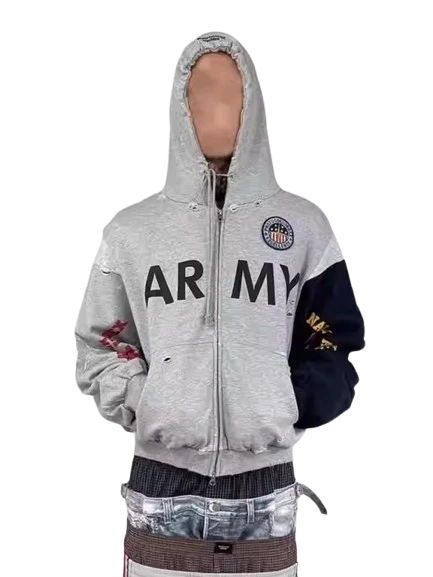 Grailz Project Gr Finger-Connected Shoulder Patchwork Gloves Zipper Hoodie Jacket Korea