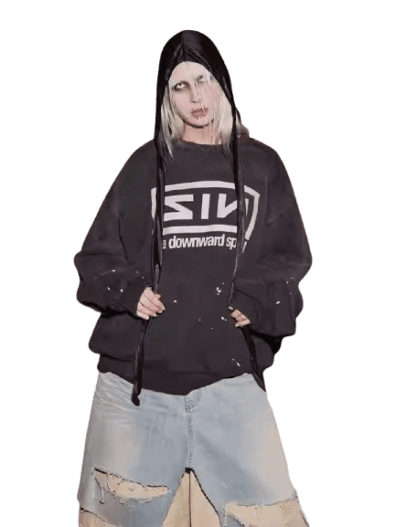 Grailz Project Gr New Retro Splash-Ink Faded Round-Neck Sweatshirt Band