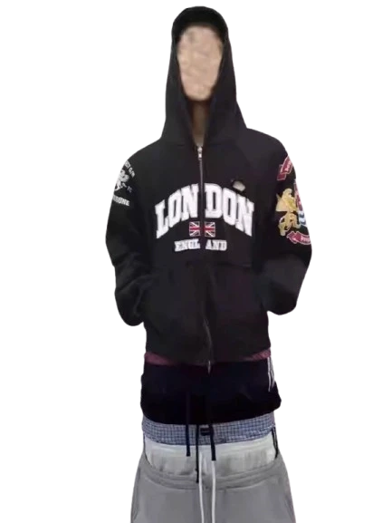 Grailz Project Gr Finger-Connected Shoulder Patchwork Gloves Zipper Hoodie Jacket Korea