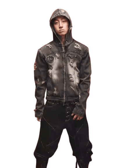 Grailz Project Gr Finger-Connected Shoulder Patchwork Gloves Zipper Hoodie Jacket Korea